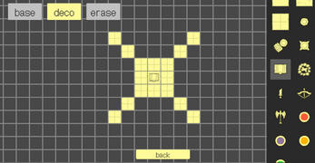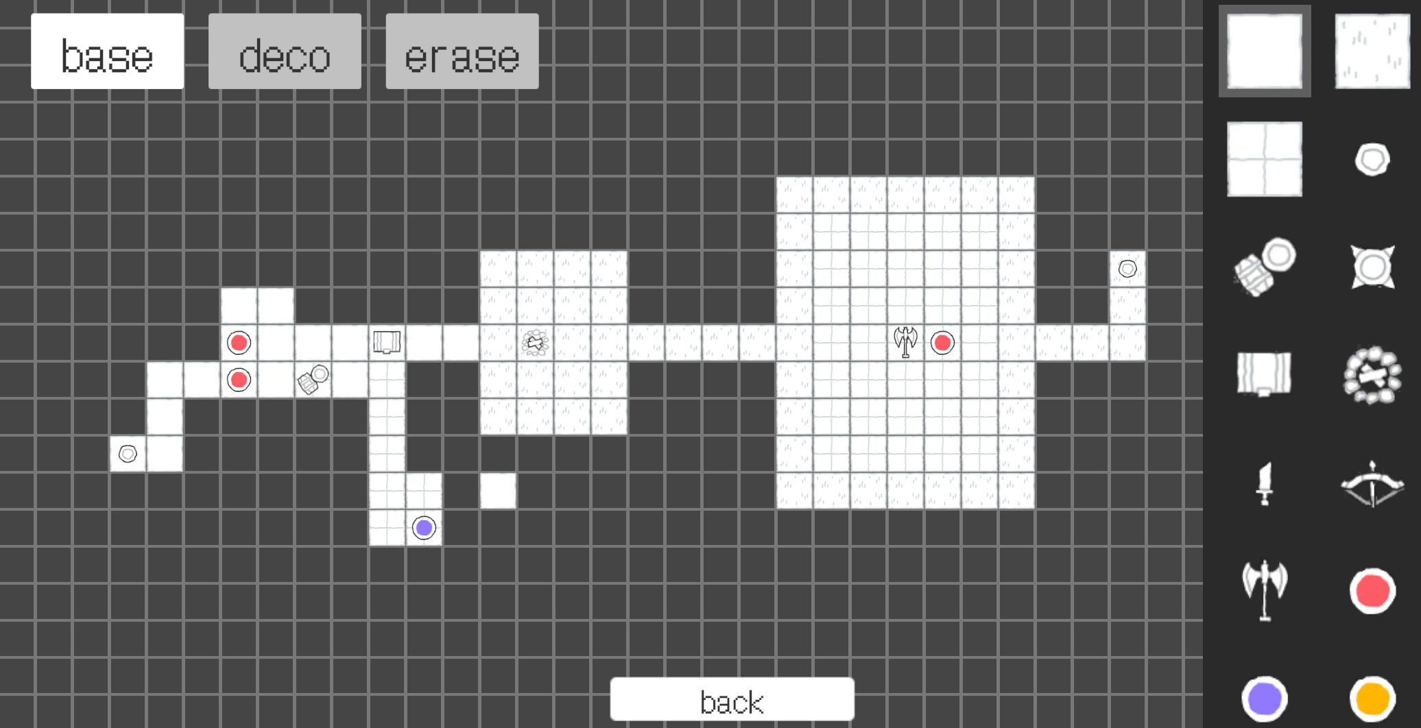 You can decide a color palette from the map selection screen. The map maker is simplistic, there are two layers, the base layer and the decoration layer. You can switch between them with the press of a button. Placing and removing tiles is done by tapping on the grid.